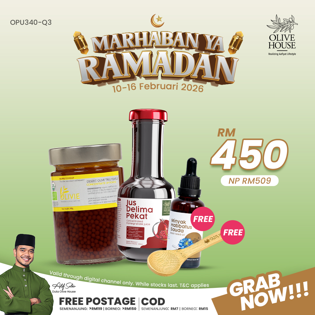 1x Olivie Power Up(340g) + 1x Pati Delima (250ml) & PERCUMA 1x Minyak Habatus Sauda (50ml) + OPU Spoon